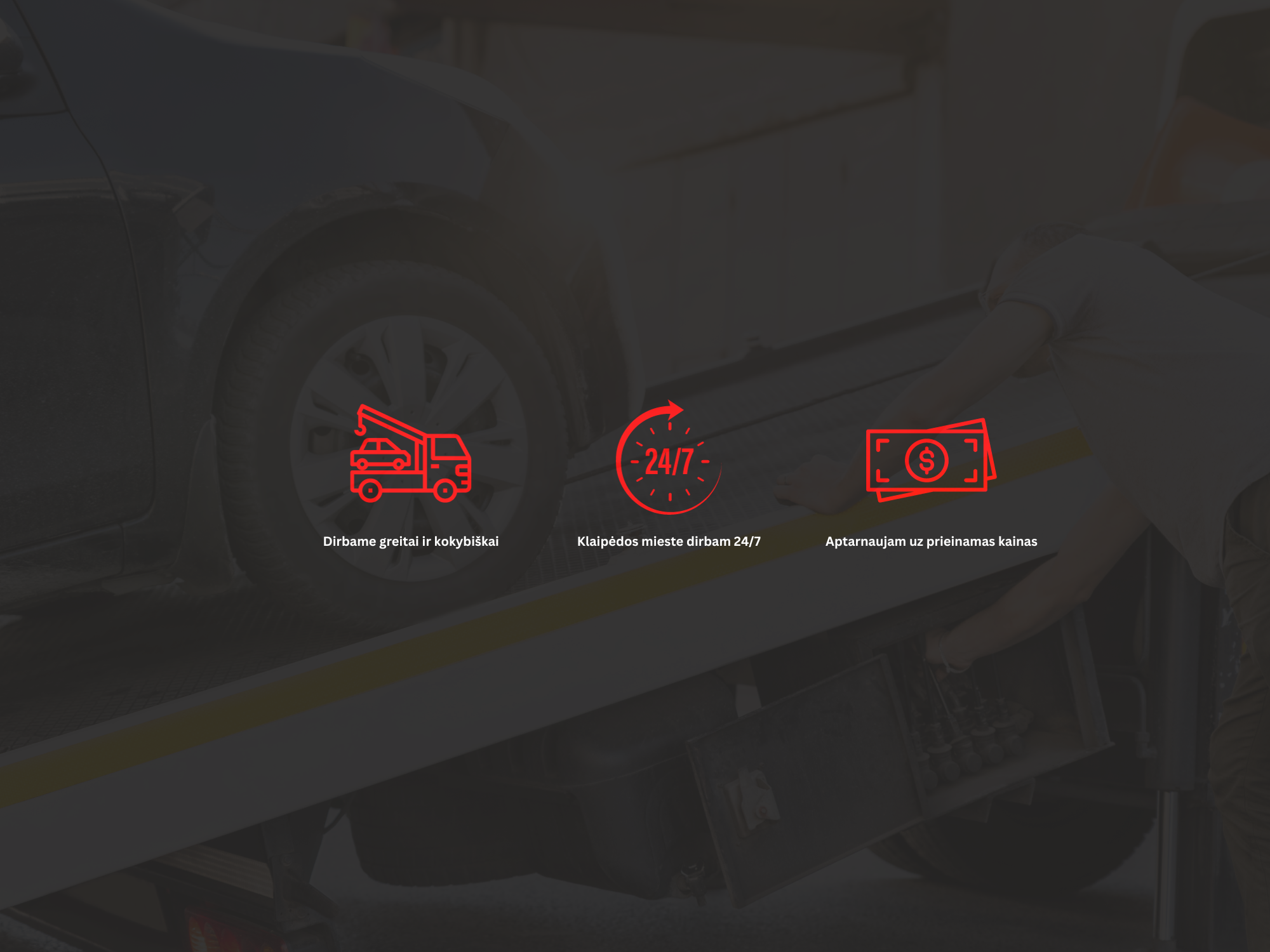 - Techninė pagalba kelyje sugedus, užklimpus, po eismo įvykio